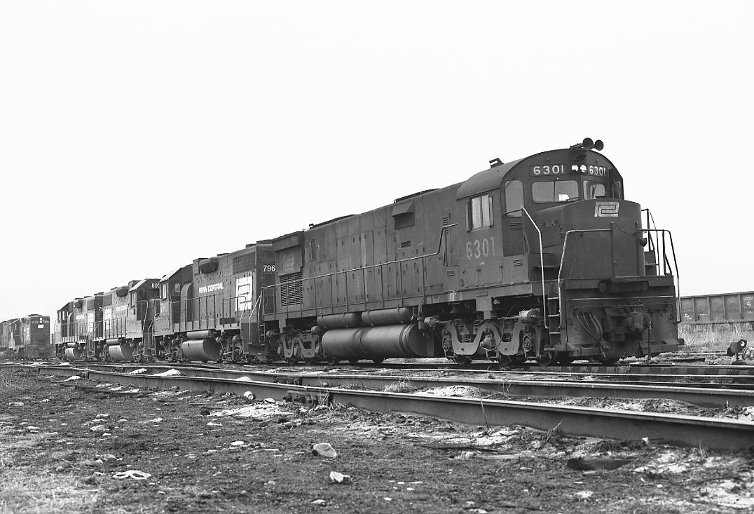 This view, looking north, of another set of power at Mingo Junction yard in December 1973 shows more details of