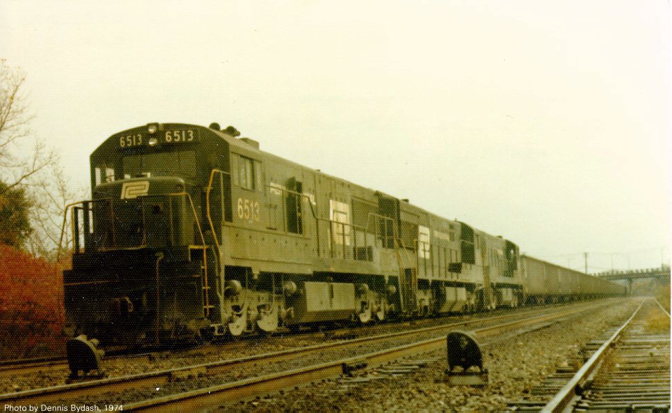 Junction with an 8000 ton ore drag on April 27, 1974. The train is seen at Aetna Road,